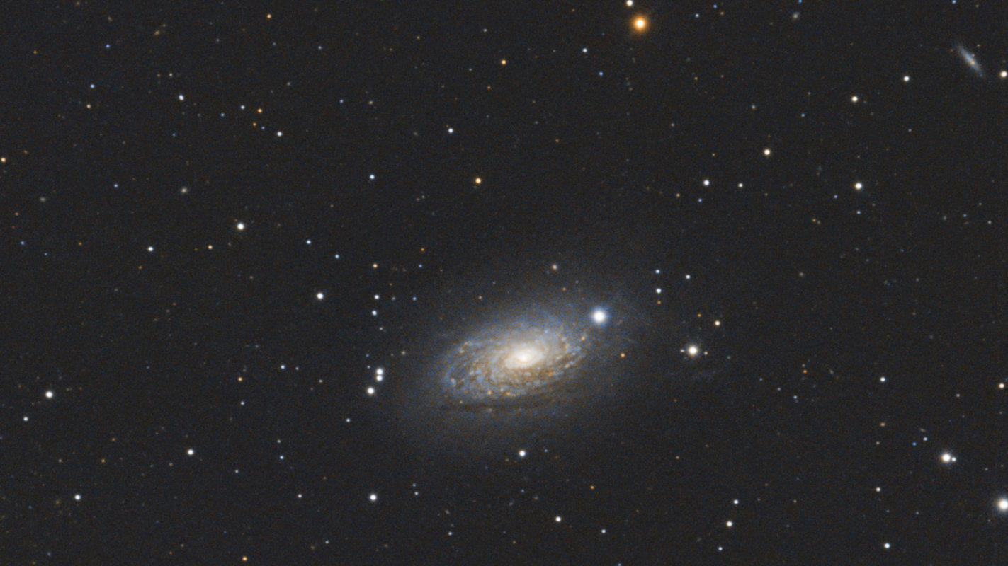 M 63 ist eine Spiralgalaxie mit den Abmessungen 12,6′ × 7,2′ und der scheinbaren