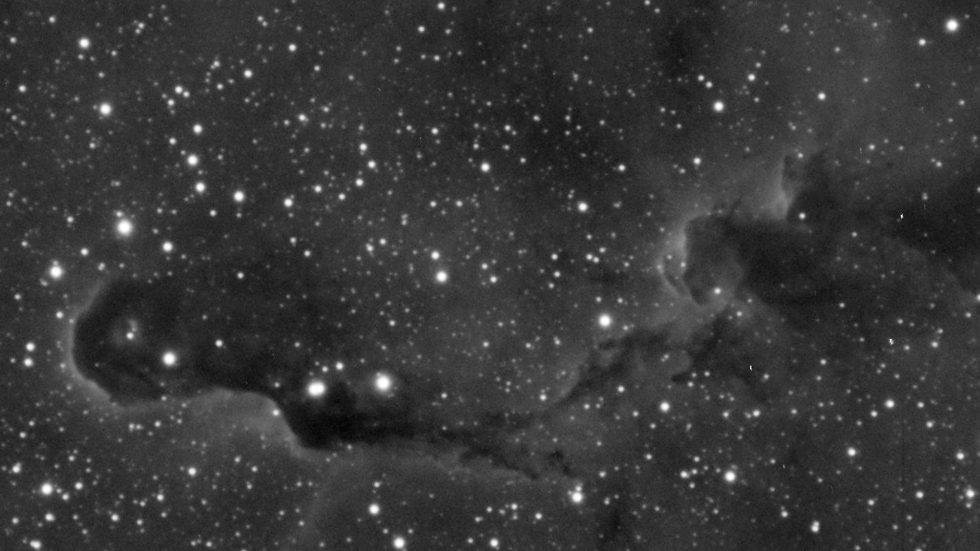 Dunkelwolke, nur minimal heller als der Himmelshintergrund.