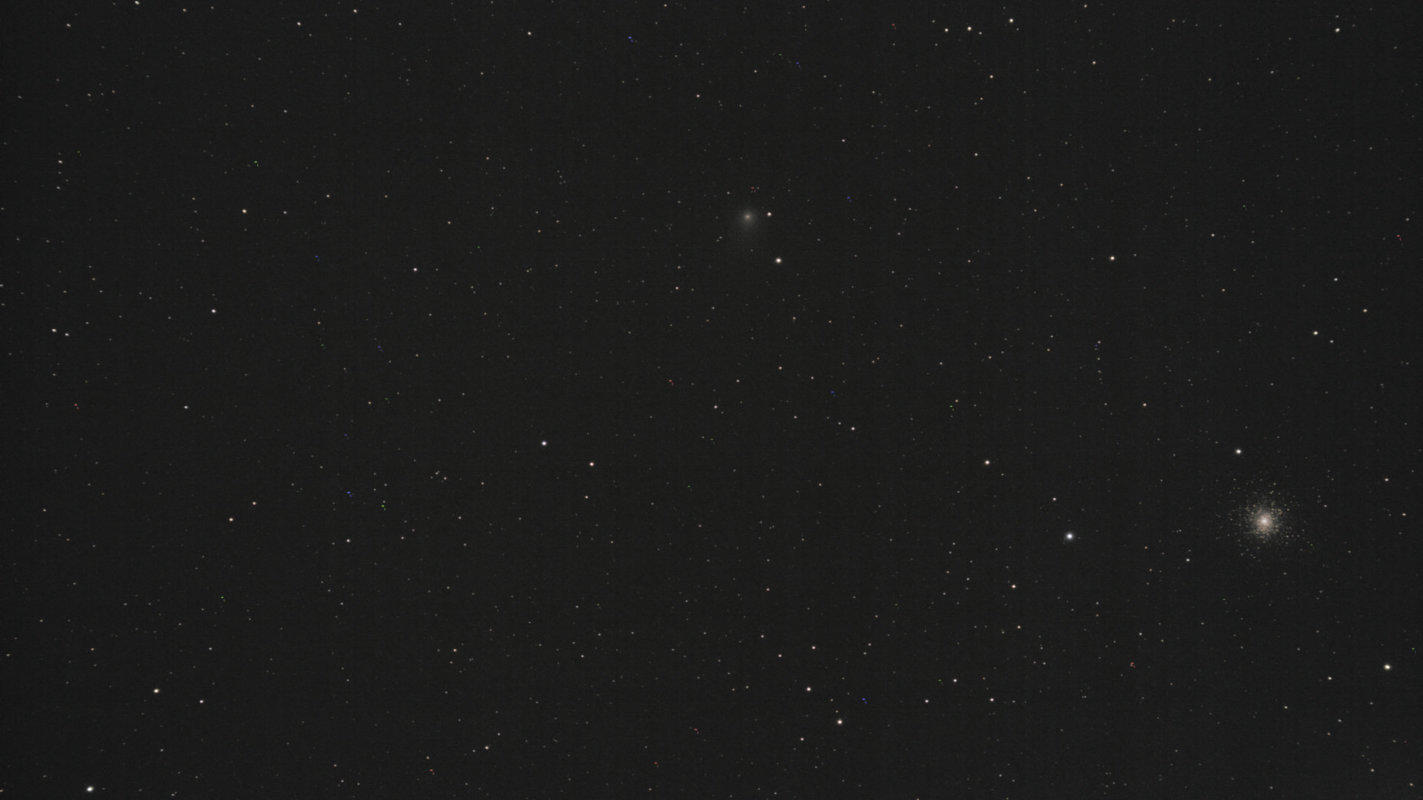Das Foto zeigt Komet Garradd beim Kugelsternhaufen M 15