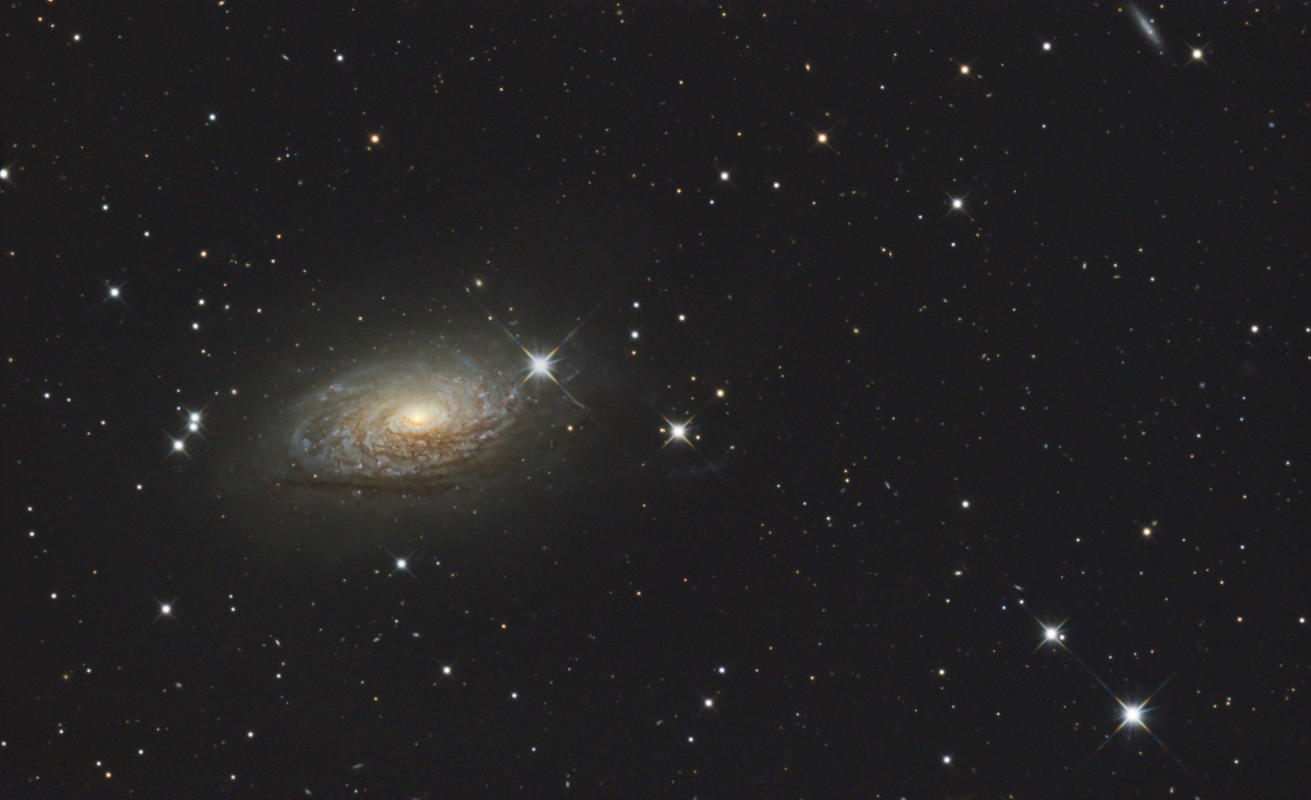 M 63 ist eine Spiralgalaxie mit den Abmessungen 12,6′ × 7,2′ und der scheinbaren