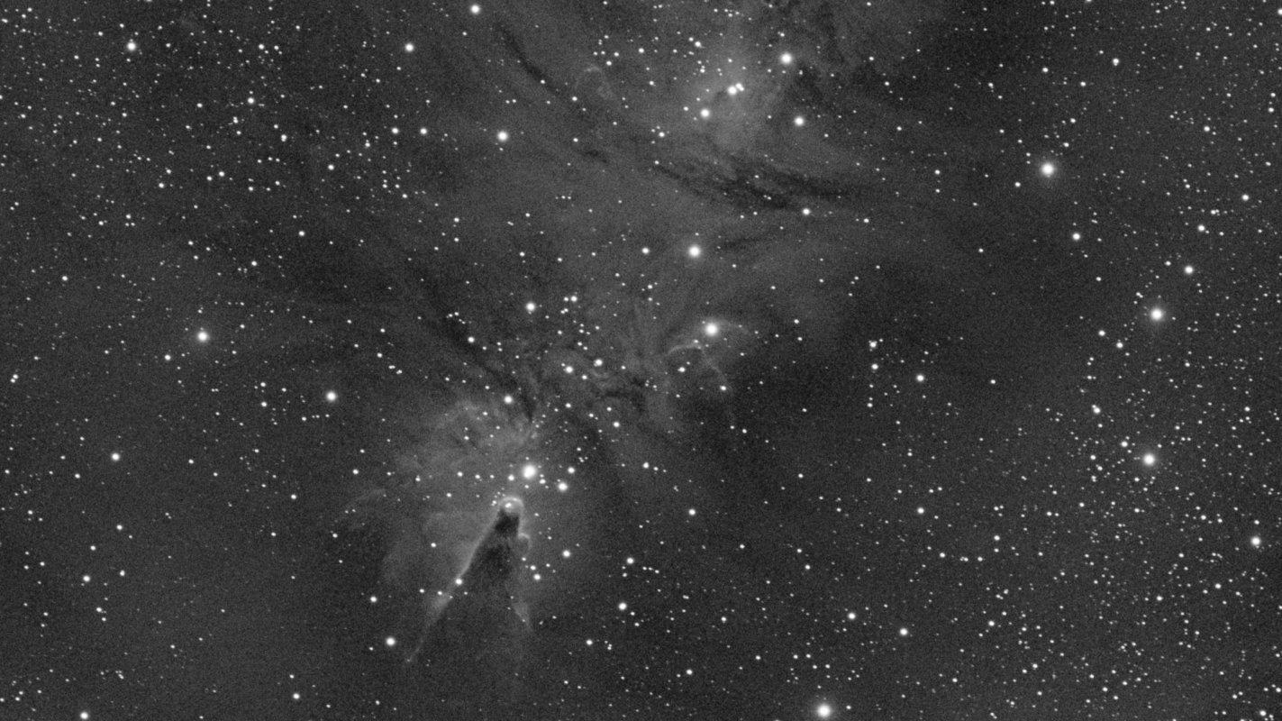 Dunkelwolke, dem Konusnebel) einem Sternhaufen (dem Weihnachtsbaum-Sternhaufen)