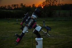 besteht aus einem Skywatcher 80/600 mm ED Pro Apo-Refraktor als Hauptinstrument,